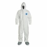 • Tyvek® 400 Coveralls, Serged Seams, Attached Hood, Elas Waist, Elas Wrist and Ankle, Front Zip, Storm Flap, WH, Lg, Std